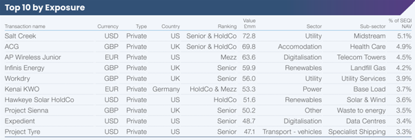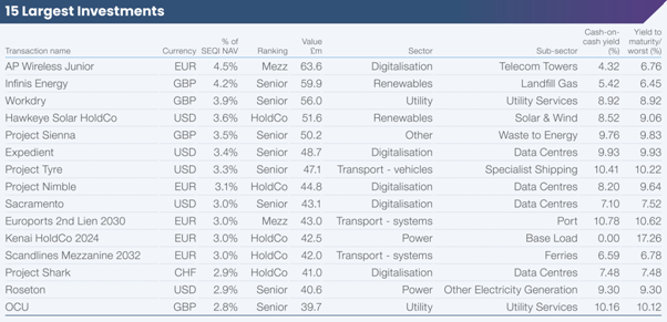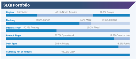 - SEQI is the U.K.’s largest listed debt investor, investing in economic infrastructure private loans and bonds across a range of industries in stable, low-risk jurisdictions, creating equity-like returns with the protections of debt.